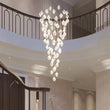 Magnolia Flower Ceramics Pendant Long Chandelier for Stairs/Kitchen Island/High-Ceiling Room